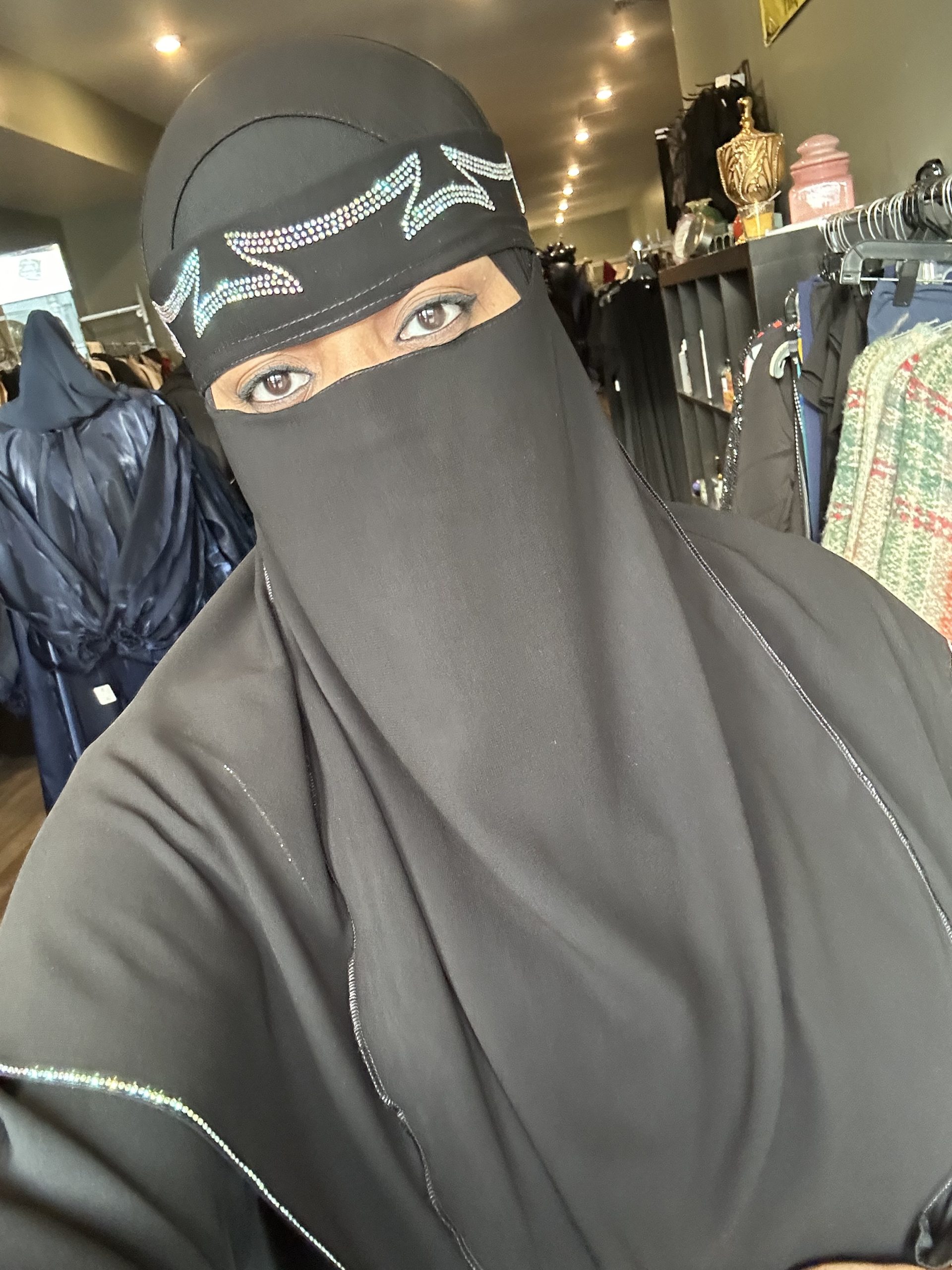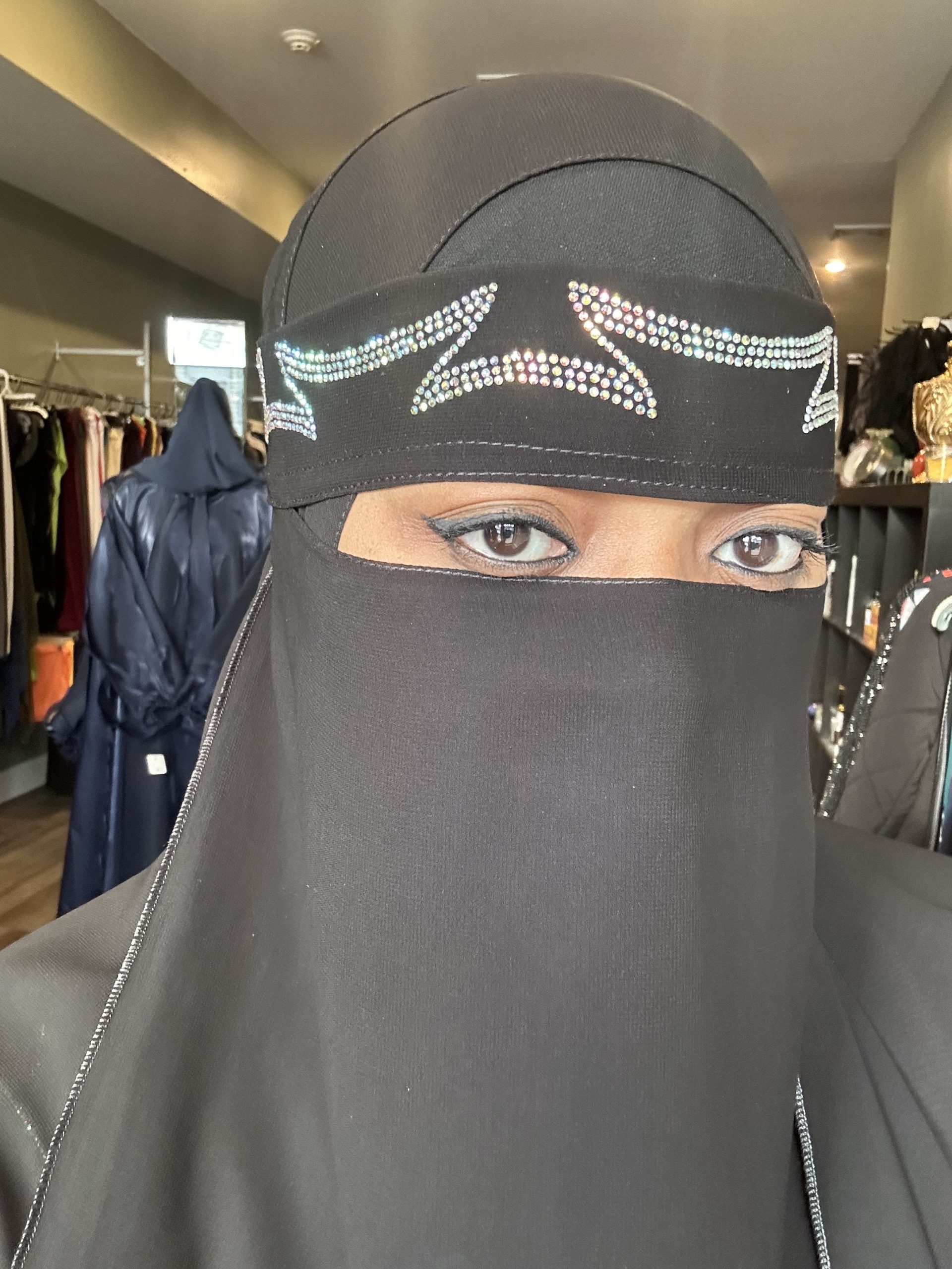 Curve Design Irredescent Stone $35.00 4 in stock Curve Design Irredescent Stone quantity Add to cart Category: Niqab Additional information Additional information Weight 1 lbs Dimensions 3 × 3 × 1 in Related products Black Plain Niqab $20.00 Add to cart Half Niqab Black $15.00 Add to cart Point Connect Plain Niqab Black $25.00 Add to cart Single Line Gold Stone Niqab $35.00 Add to cart