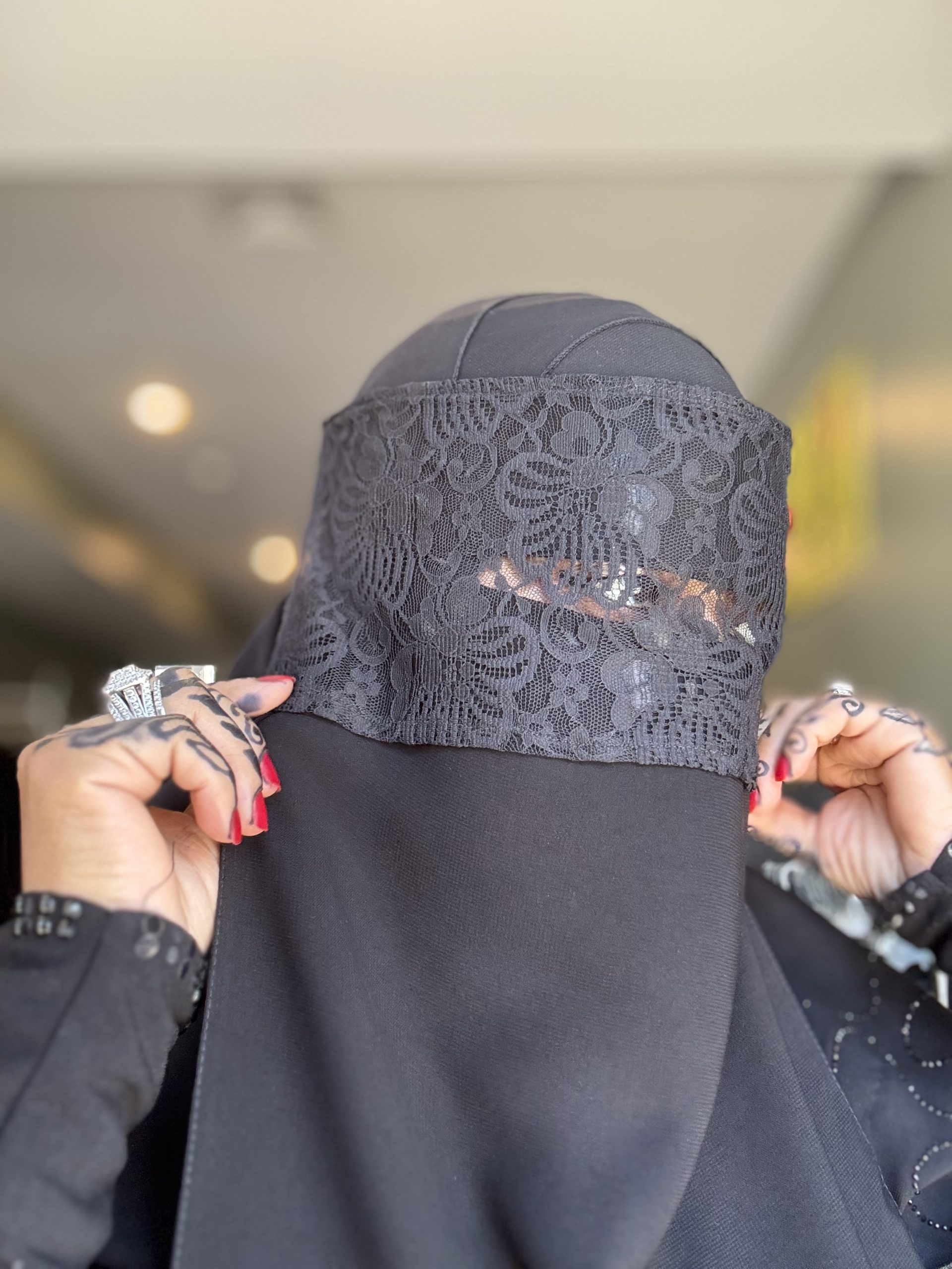 Flower Lace Screen Niqab $35.00 Out of stock Category: Niqab Additional information Additional information Weight 1 lbs Dimensions 3 × 3 × 1 in Related products Satin Band Stone Line Niqab $35.00 Add to cart Black Box Top Stone Niqab $35.00 Add to cart Single Line Gold Stone Niqab $35.00 Add to cart Plain 2pc Plum Shaylah & Niqab Set $40.00 Add to cart