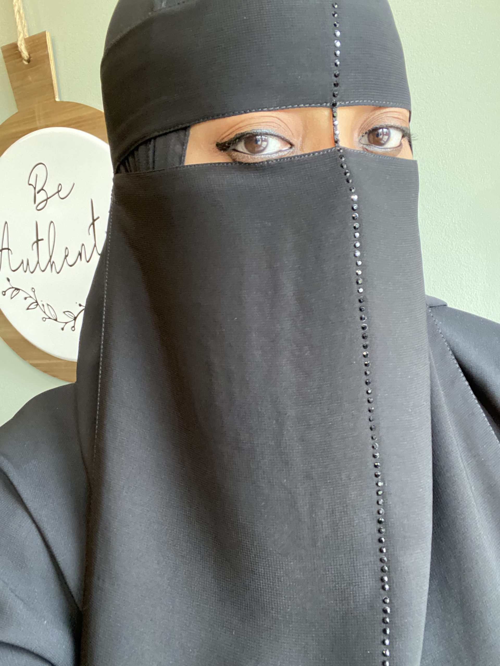 Reg-Stoned String & Face (Black) Line Niqab $40.00 Out of stock Category: Niqab Additional information Additional information Weight 1 lbs Dimensions 3 × 3 × 1 in Related products Single Line Gold Stone Niqab $35.00 Add to cart Satin Point Niqab W/String $25.00 Add to cart Point Connect Plain Niqab Black $25.00 Add to cart Black Box Top Stone Niqab $35.00 Add to cart